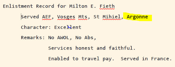 Milton, my grandfather, fought in the Argonne forest! A terrible battle, huge casualties, incessant bombing that reduced the trees to stubs. I’d never imagined my grandfather, a mild man, crouched in a trench. He loved coffee and long walks.